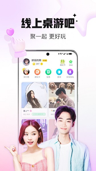 1、找到有趣的朋友,随时随地通过手机体验桌游玩法,在线上远程开启语音模式,年轻人最喜欢的畅聊语音交友游戏平台;