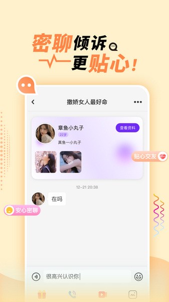 聊天回复率超高,零距离视频聊天,助你赶走孤单,一分钟拉近彼此距离。