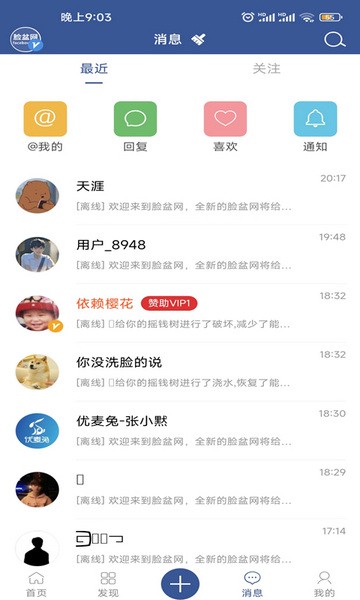脸盆网拥有人性化、温馨的聊天功能,可以及时收到朋友的消息,在线互相沟通,让彼此不再有距离,让一个从陌生的人变得更加的熟悉。