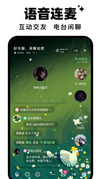 森林派对是一款多人社交游戏软件,里面有很多以解谜推理为主的休闲小游戏,玩家可以通过文字或语音交流一起完成任务。软件还有动态广场功能,大家可以在这里展示自己、分享兴趣爱好或者关注别人。游戏分为多个环节,比如自由讨论、捕食阶段和进化阶段,玩家需要通过策略和合作来赢得比赛。我觉得这种社交属性的游戏挺有意思的,不仅能锻炼逻辑思维还能拉近人与人之间的距离,特别是有语音聊天功能,感觉更真实有趣。