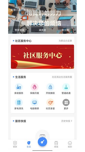 4、物业管家:物业公告、小区新闻、在线报修,访客通行更便捷;