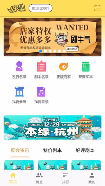 1、进入app点击首页,在首页可以发现推荐的剧本与展会