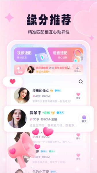 相觅交友app是一款专为现代年轻人设计的高效社交应用,旨在帮助用户轻松认识新朋友、寻找心动对象,并开启甜蜜恋情。这款应用汇聚了大量优质男女,提供多样化的功能,如智能推荐、语音速配、视频速配等,确保用户能够高效地找到志同道合的朋友。此外,丰富的图片动态和便捷的搜索功能让用户的社交体验更加丰富多彩。