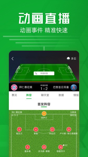 比分直播:提供快速、即时、准确的足球的赛事比分数据直播。