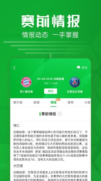 随时随地关注动态,快速了解比赛比分和数据分析,深度挖掘赛前赔率、深度分析、场内外照片、直播链接,国内外大v实时评论、战报赛果。