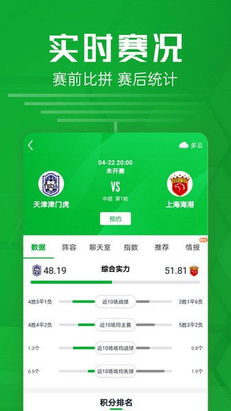 足球数据:拥有所有热门联赛的一手数据,用户能快速了解关注的球队的积分和赛程。