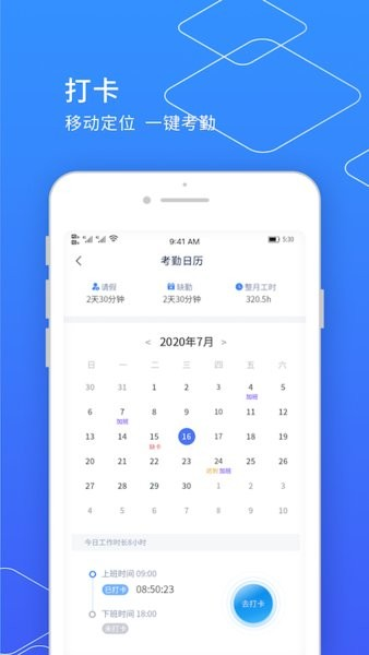 通过软件就可以开启考勤打卡,帮助你记录每天的打卡信息