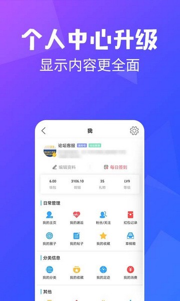 个人中心显示的内容更全面,详细的内容信息分类,内容查找很方便。