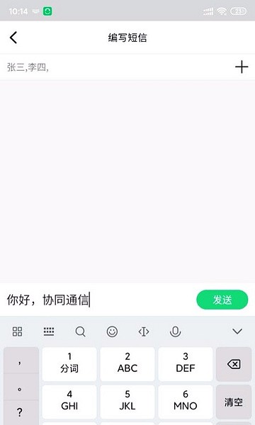 6、支持在线编写短信,直接的添加需要接收者,添加完之后就可以一键群发;