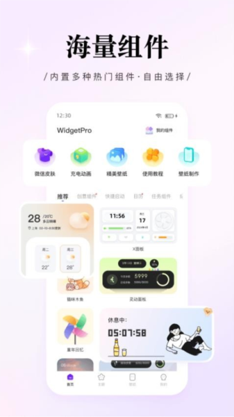 WidgetPro提供各种类型的手机桌面组件,拥有海量高清壁纸头像,动静态地球/企鹅聊天皮肤。充电动画、跑马灯、灵动岛、耳机弹窗等你来尝试!