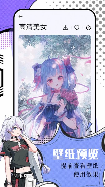 软件里面的壁纸资源分类明确,涵盖美女、动漫、唯美治愈等多类别。