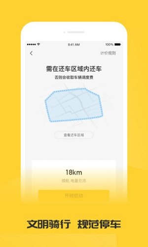 扫码开锁,关锁自动计费,app预约选车,智能导航,续航实时可见.