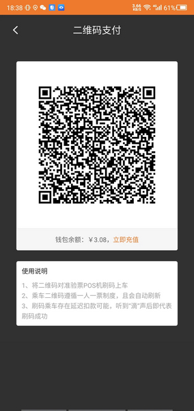 二维码付款:扫描二维码以快速进行公交付款;