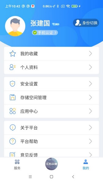 2、进入江苏交通云APP,选择相应的账号进行登录。