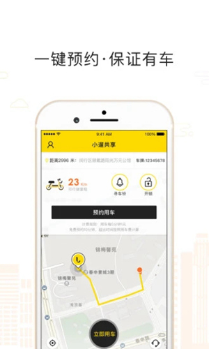 小遛共享APP是一款主打共享单车租赁的软件,界面简洁清爽,功能丰富强大,用户可以通过软件随时随地查询周边停车点,并以颜色表达该点车辆是否被占用,让你轻松避免到点无车的尴尬,且软件支持在线预约车辆,自由指定用车地点、时间,到点快速取车出行,更便捷!在到达目的地后,轻松无桩停靠还车,省时省力出行更高效!此外,平台还会为每位规范用车的用户提供意外险,出行更安心!