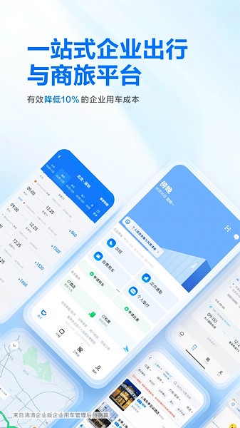 -酒店:覆盖50万+优质酒店终端;将网约车与商旅场景深度融合,综合计算时间成本与行程费用估算,规划更优出行方案;超标部分可由个人垫付,满足差旅人士个性化需求;