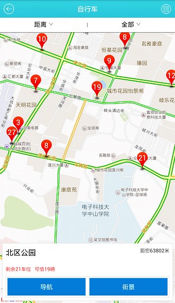 3、公共自行车提供全市自行车租赁点和租赁记录查询;