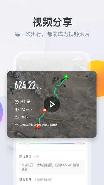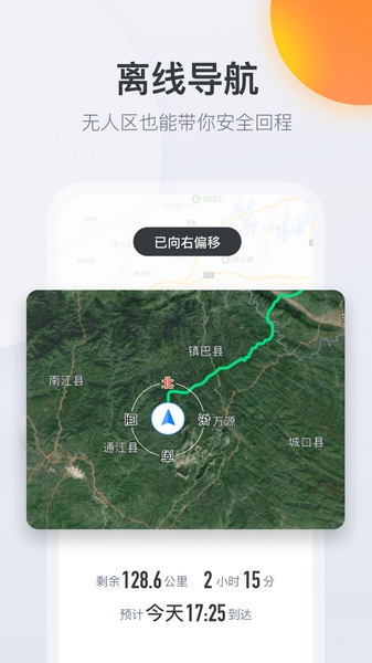 2.为大家的出行提供简单好用的GPS轨迹路线记录、分享和多种离线地图下载等服务,并可以快速找到更多越野的好路线。