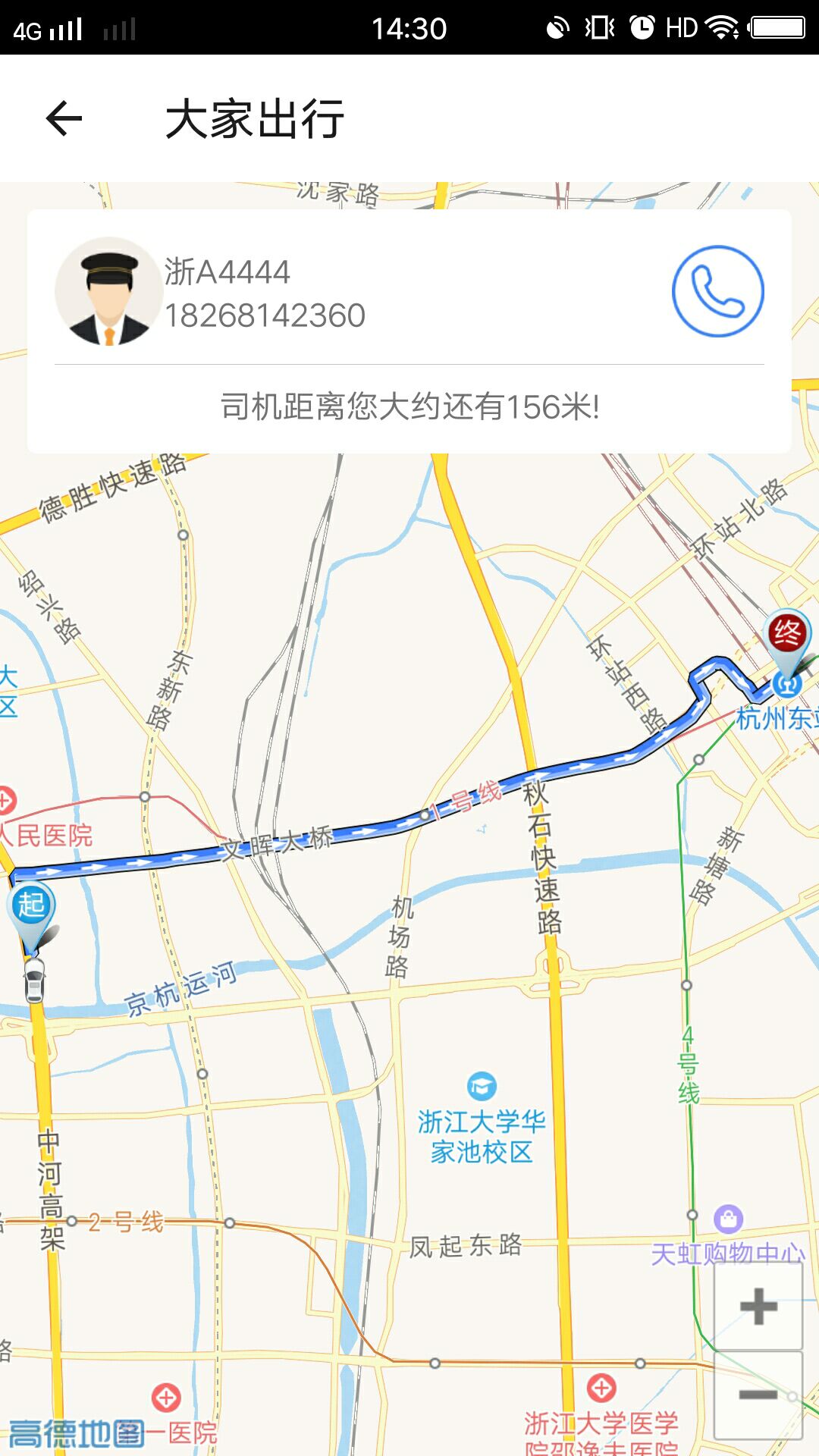 4、打开地图一览司机位置,能够一键电话呼叫司机