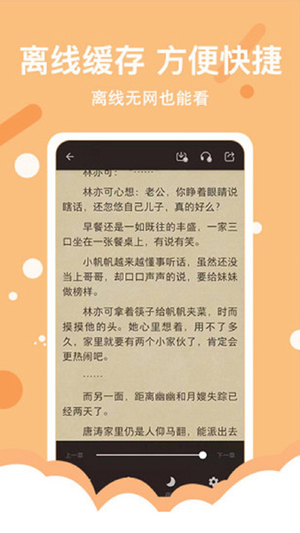 5、在找到感兴趣的小说后可在线阅读,也可离线缓存阅读。