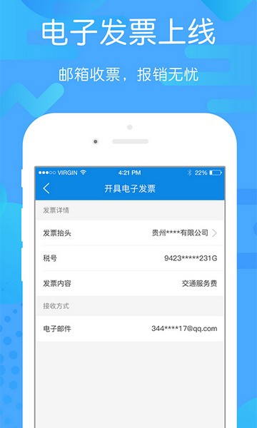 在这里,不但能够帮助你一键快速购买各种长途汽车的车票,可以非常方便的查看本地的车次航班,出发时间一目了然,同时支持自由输入起点以及相关目的地来进行快速制定最合适的行程路线,而且能够很好地为你提供每一辆长途汽车车次的具体出发时间和到站时间,方便你提前预约住宿酒店与出租车,做好应有的出行准备,并且成功购票之后也可以快速的帮助你申请开通电子发票,除此之外,这款软件界面简洁美观清晰,可以自动的为你记录本次乃至以往的各种购票信息,帮助你在线进行电子发票的报销,还支持在主页立即查询到服务平台的某一些相关公式信息,随时随地即可轻松了解查询公示详细信息。
