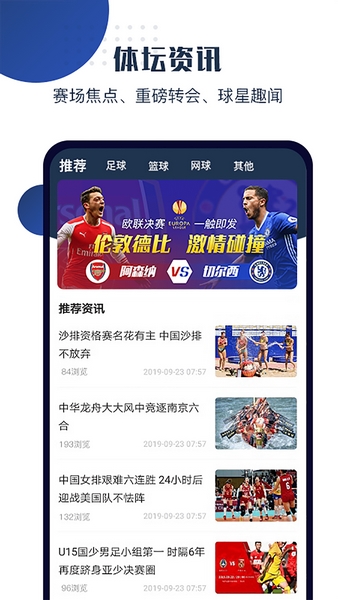 2、台包含了足球、篮球、排球等各大体育项目资讯,喜欢的朋友可以随时查看;