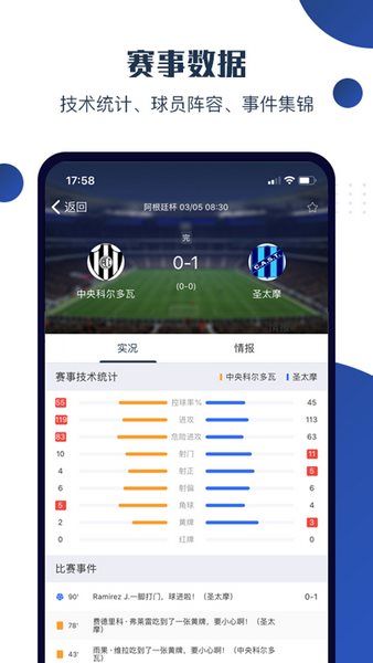 5、提供全面的比分数据,包括中超、意甲德甲英超、欧冠等各大热门赛事比赛直播;