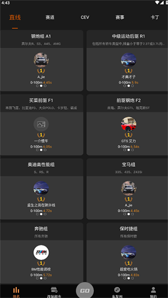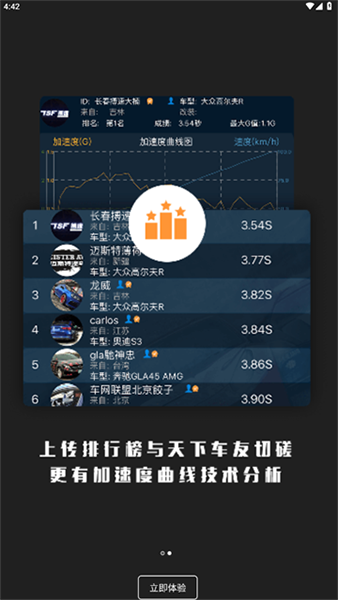 车涯是一款非常专业的为汽车测速的平台,用户可以在这里看到自己爱车的真实数据,也可以看到其他人的数据。这款软件有许多测试模式,直线模式、赛道模式等任用户挑选,每个模式的判定方式也不同。用户可以通过在线排行榜实时观看自己的排名,也可以在其他用户的成绩下进行友好评论。值得一提的是,该软件可以随时随地组织一些赛事活动,自定义的赛道让用户可以更好的感受到不同车之间的差异性。