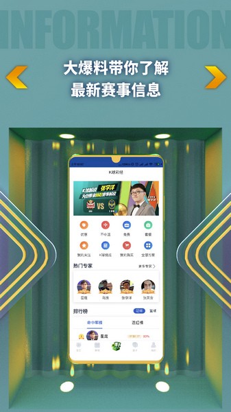 海量专家,从大咖名嘴到草根红人,深耕专项联赛,K球每日编排带你赢!
