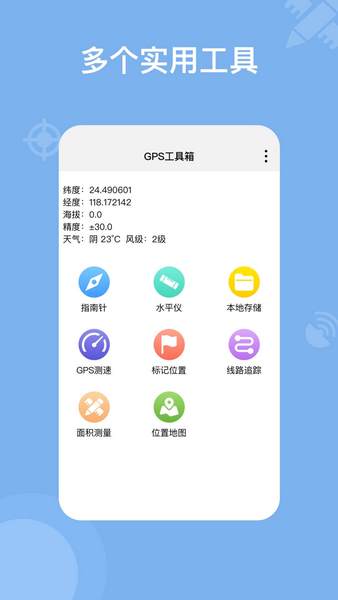 【标记位置】可以收藏您当前位置的经纬度、海拔、相关照片等信息保存,点开之后可以在地图上找到对应的位置点;