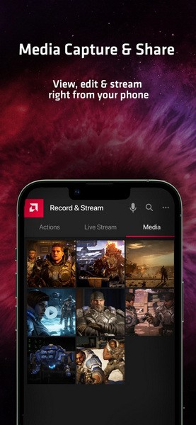 2、Radeon ReLive远程操作。用户可以使用智能手机或平板电脑在PC上控制Radeon ReLive进行视频录制和截图,程序支持一键捕捉、直播和即时回放功能,以及一个易于使用的画廊功能,用户可以方便地通过自己的新浪微博等社交媒体账户分享游戏截图。