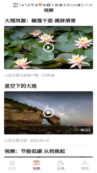 2、软件还有着专门的【视频】页面,这里显示的短视频包含了城市宣传、景色欣赏、积极正向等内容。