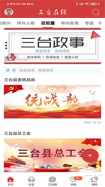 三台在线最新版一款专门为三台本地的用户打造的新闻资讯平台软件,用户可以快速掌握每天三台发生的大小事。软件的功能十分完善,软件可以提供衣食住行的建议,还有查违章,查天气等功能,给用户带来极大的便利。值得一提的是,软件里提供社区服务,用户们在社区里面可以进行更好交流,让大家可以了解更多的生活信息。此外,软件将视频和图文相结合,帮助用户更好了解资讯。