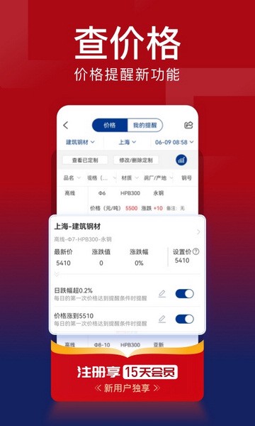 3、钢材短消息,钢铁价格短信提醒,定阅不限总数消息推送。