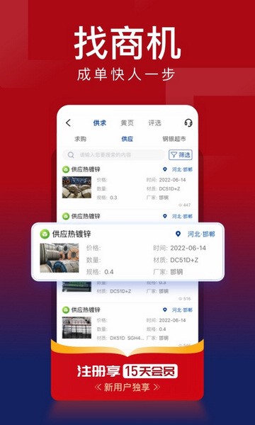 丰富信息一键定制,市场行情、钢厂调价、调查统计等信息即时推送,商机与您不期而遇。