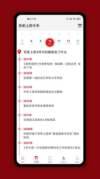 有一句古话说的好,读史以明鉴,察古以至今,所以今天给大家推荐的这款中华历史app就是一款专门为大家带来十分丰富的中国历史,其中包含了中华上下五千年的历史,在这里大家可以看到超多历史中发生的重大事件,同时也为大家提供了十分便捷的搜索功能,大家可以搜索哪一年的历史,即可快速得到想要的内容,是一个学习历史不可多得的软件之一。