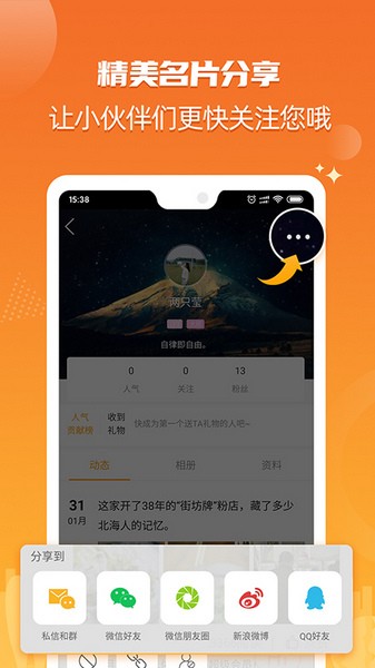 2. 个人主页可以更换封面,添加个人简介