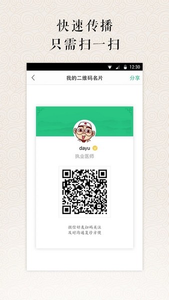 6、医生可以在线制作专属于自己的二维码名片,一键发送给自己的病患,非常的方便。
