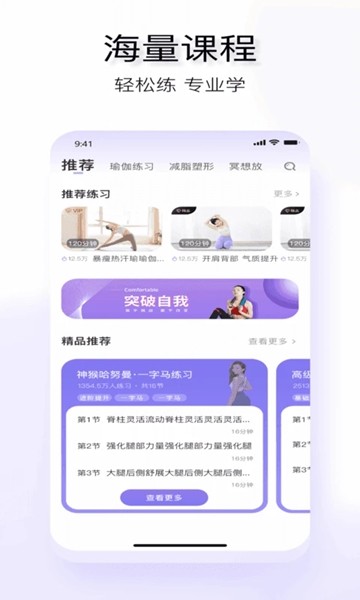 1、【线上课程】由百位名师亲身参与教学视频录制,方便用户通过线上在家、办公室、户外等地进行瑜伽练习。新版本支持投屏功能了!