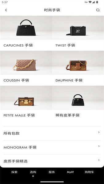 LV app是一款国际知名品牌的网上商城软件,中文名路易威登,该应用里面的商品品类众多,包包、服饰、配饰、珠宝等都一应俱全,体现了国际知名大牌的全方位的服务。除此之外,它还拥有各种最新服饰推送资讯,让用户可以第一时间了解到服饰的风格,提前进行下单购买,十分的方便。并且它还支持添加商品至心愿单,能够第一时间了解心愿单商品的价格信息,从而把握住每一次优惠折扣。