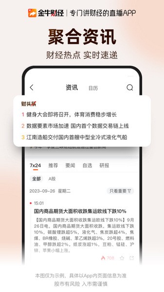 金牛财经app是一款以财经资讯直播为主要内容的投资理财软件。这款软件能够为用户提供最新的财经资讯新闻,带来各种专业的新闻报道,让用户第一时间了解金融领域的变动。同时,金牛财经开设了专门的直播版块,各大金融从业者开设直播来讲述投资理财的经验技巧,教授各种实用的投资方法,也可以为用户提供一对一的理财咨询。