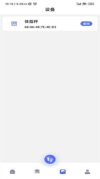 1、绑定设备:APP将体脂秤设备进行一键绑定,将体脂秤设备绑定连接后可采集测量数据。