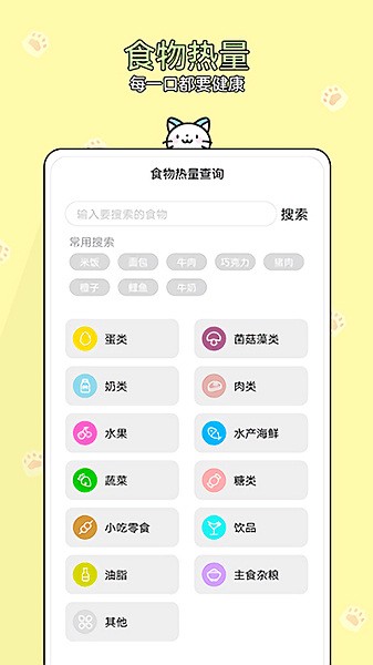 除了这些,app还提供了食物热量查询功能,我可以轻松记录自己每天吃的东西,还能知道摄入了多少热量。对于像我这样喜欢美食的人来说,这个功能特别实用。另外,软件里还有一些可爱的皮肤,虽然这对功能性影响不大,但确实增加了使用乐趣。