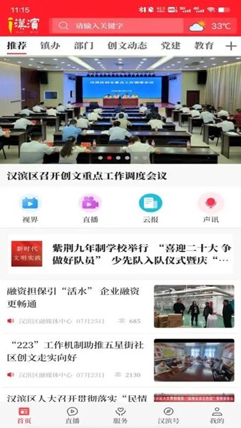 开设了新闻、直播、服务、“汉滨号”等栏目。