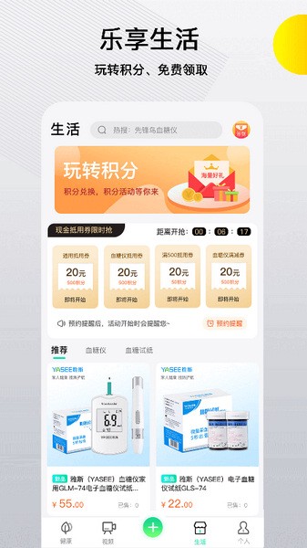 多多参与系统活动,血糖仪、试纸、无糖食品等商品免费拿。