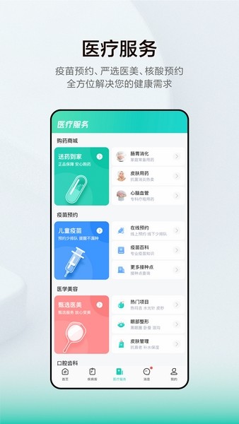 -【品质医疗服务】提供疫苗预约、严选医美、核酸检测等多种医疗服务,一站满足你的健康需求