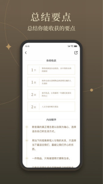 软件的亮点就是把知识分享得很认真,而且更新的内容也很丰富,有很多大咖来讲解书籍,感觉像有私人图书馆一样方便。特别是v3.2.5版本增加了不少专家讲解,这让我对一些书的理解更深了。