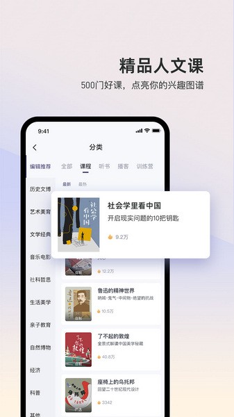 2、学习各种各样的知识,超多的学习课程任你选择,观看精品课、视频课、音频课等课程学习;