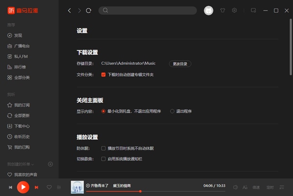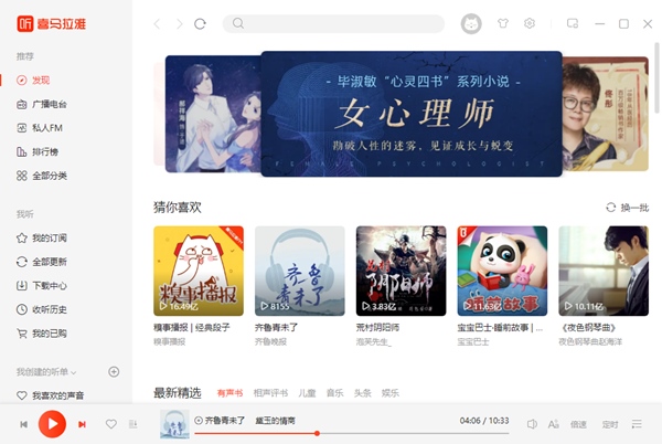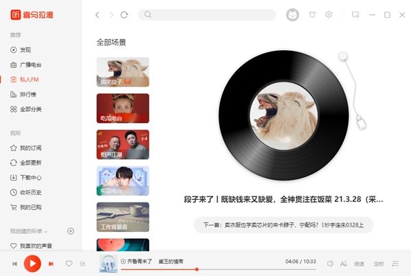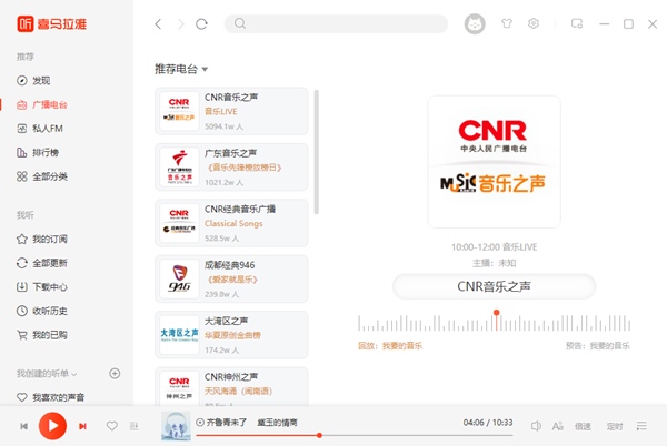 3、收听功能:用户可以在线播放并收听喜马拉雅网的任意一条声音和个人电台,包括自己关注的个人电台,或通过搜索找到的热门声音。收听不设限制。