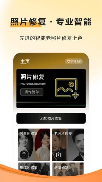 1、我们在主页选择添加照片修复;
